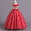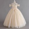 The large bow at the waist accentuates the figure and adds a touch of romance. The multi – layer tulle skirt sways gracefully as one moves.